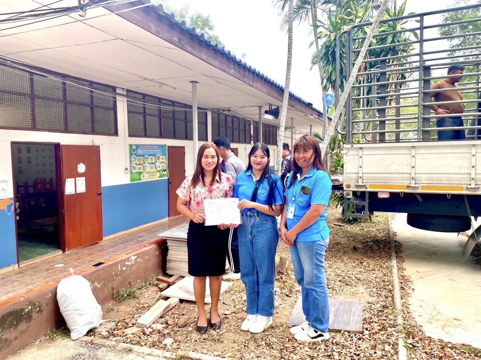 ทางบริษัทฯ ได้เดินทางไปโรงเรียนบ้านพยอมงาม ตำบลหนองปลาไหล อำเภอหนองปรือ จังหวัดกาญจนบุรี และนำสิ่งของไปมอบให้วันที่ 9 เมษายน 2568 ได้แก่
